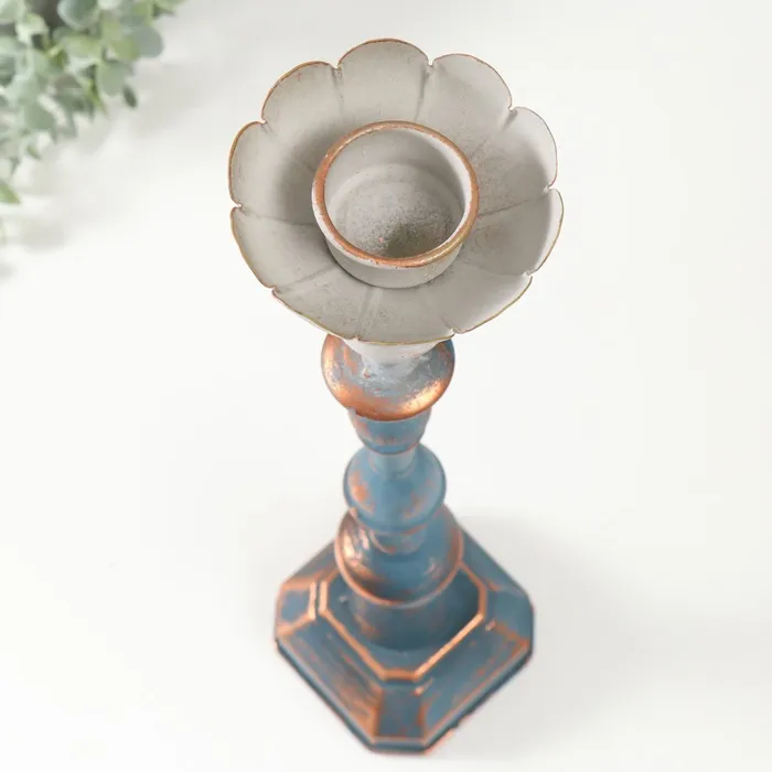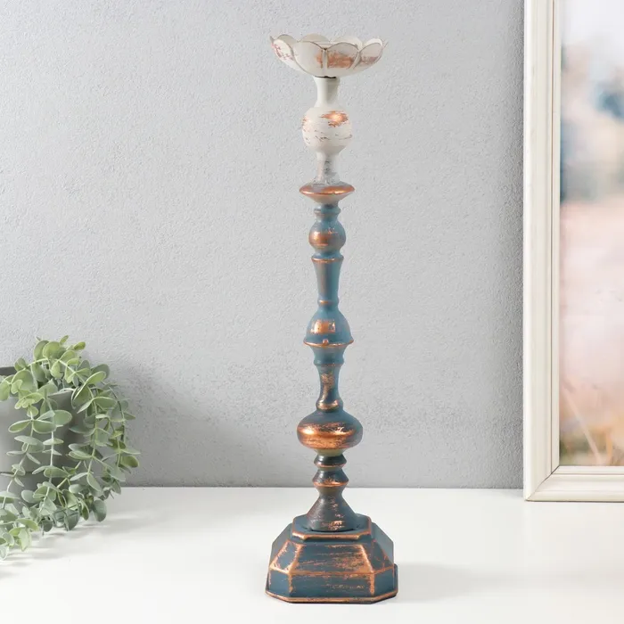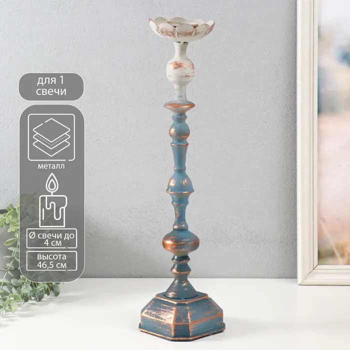 Металлический подсвечник на 1 свечу «Моника», состаренный сине-серебристый, 11×11×46.5 см — Характеристики
