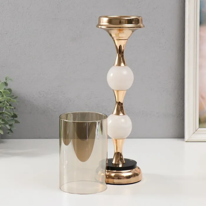 Металлический подсвечник на 1 свечу «Мраморный шар», золото, 49×10×10 см — Характеристики