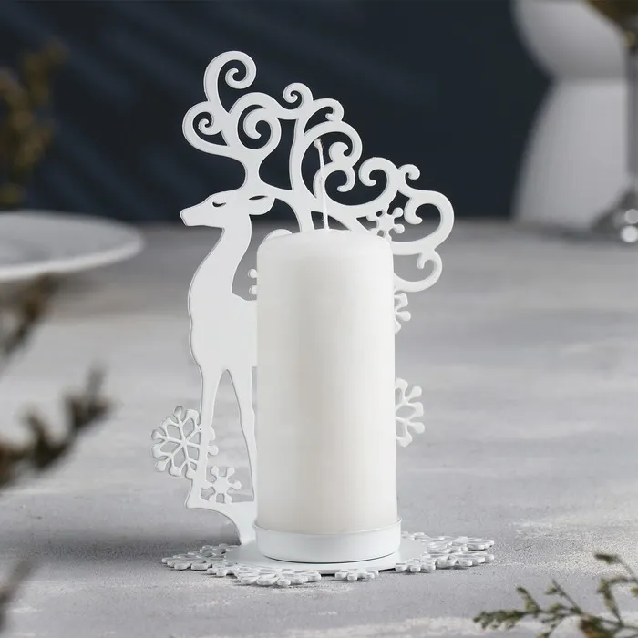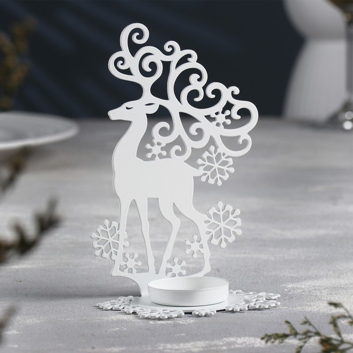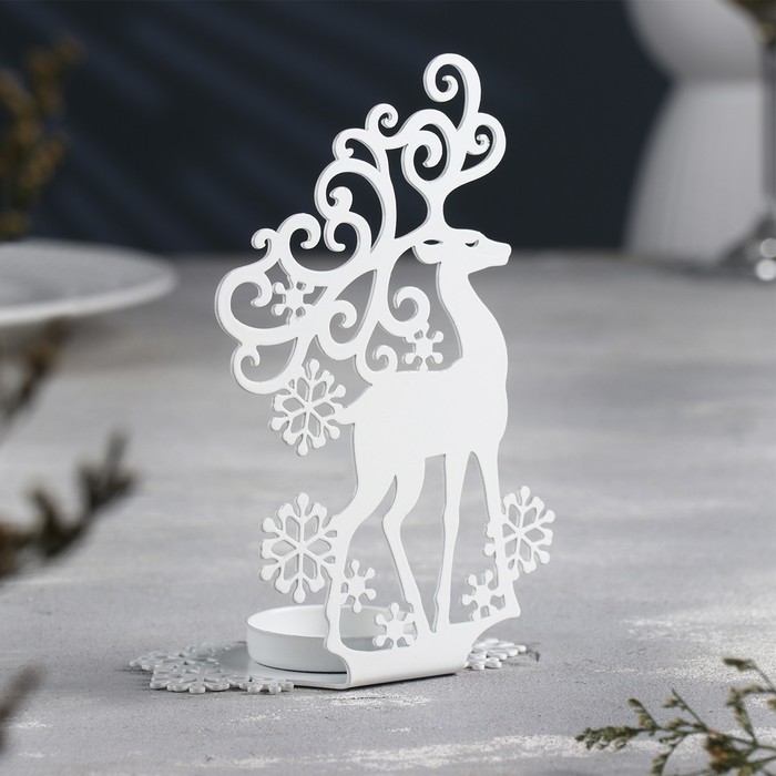 Металлический подсвечник на 1 свечу «Олень», 6.5×9.6×14.5 см, белый — Характеристики