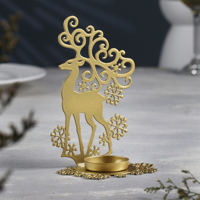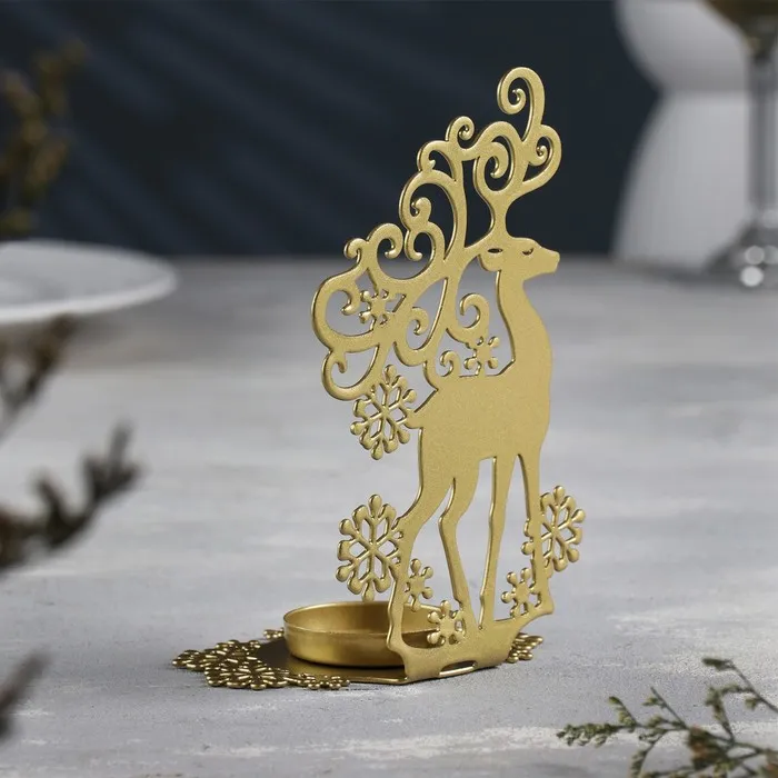 Металлический подсвечник на 1 свечу «Олень», 6.5×9.6×14.5 см, золотой — Характеристики