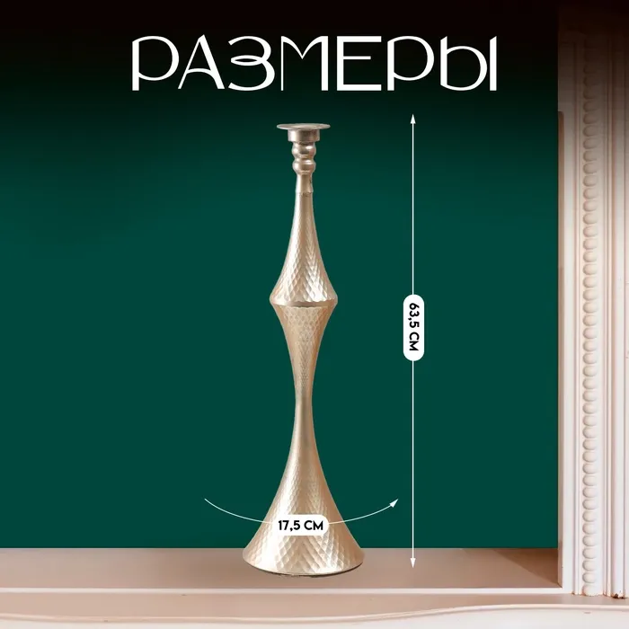 Металлический подсвечник на 1 свечу «Рокко», серебро, 17.5×17.5×63.5 см — Характеристики