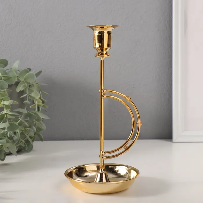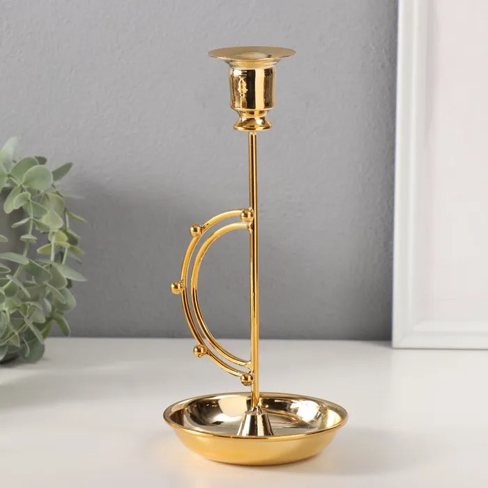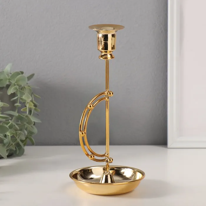 Металлический подсвечник на 1 свечу «Шарики на дуге», d=2 см, 10.5×10.5×23 см
