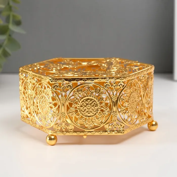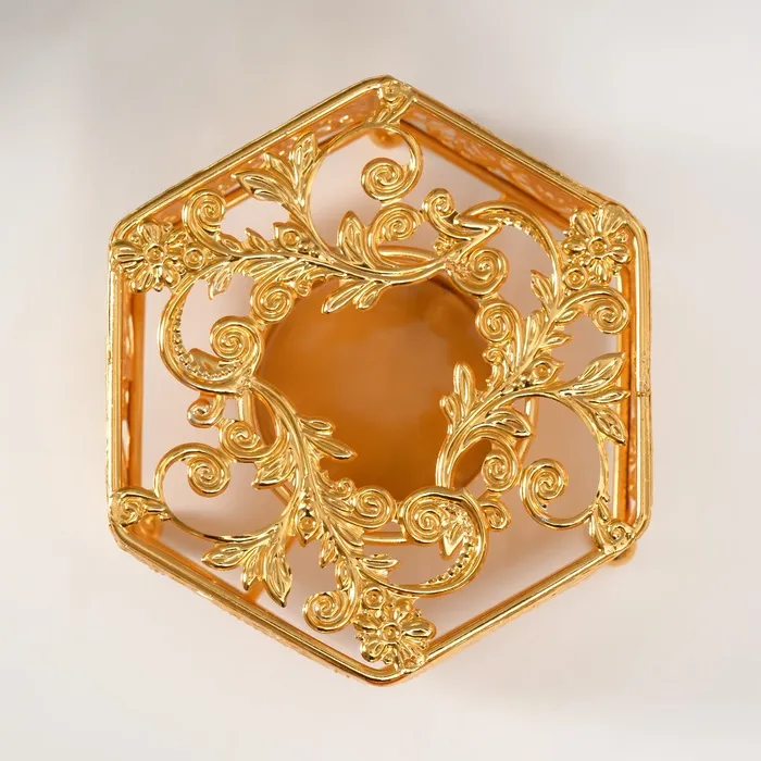 Металлический подсвечник на 1 свечу «Шестигранник. Пушистые листья», золото, d=5.5 см, 10.7×12×5.6 см — Характеристики
