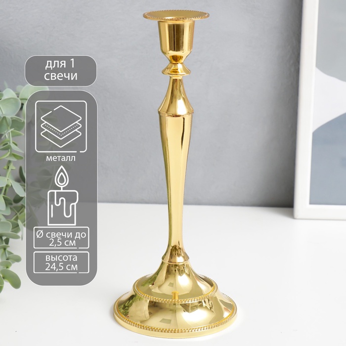 Металлический подсвечник на 1 свечу «Сканди», золото, 24.5×10×10 см — Характеристики