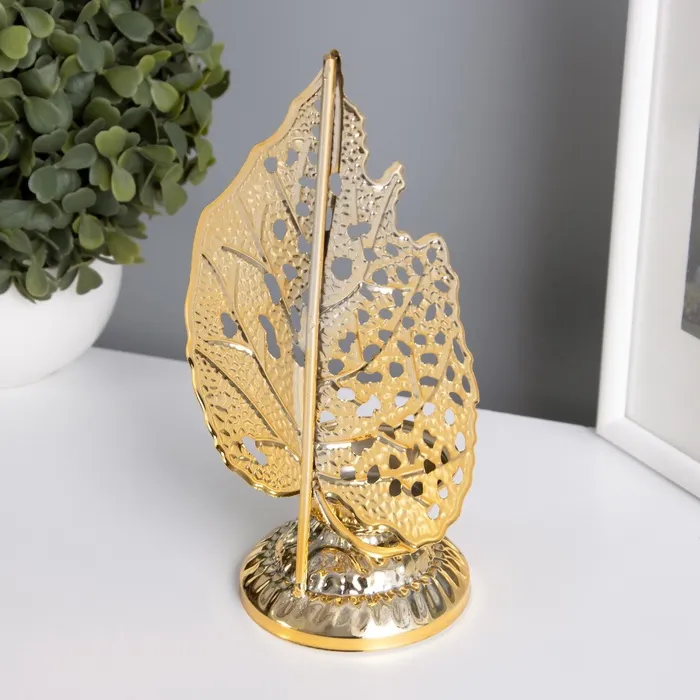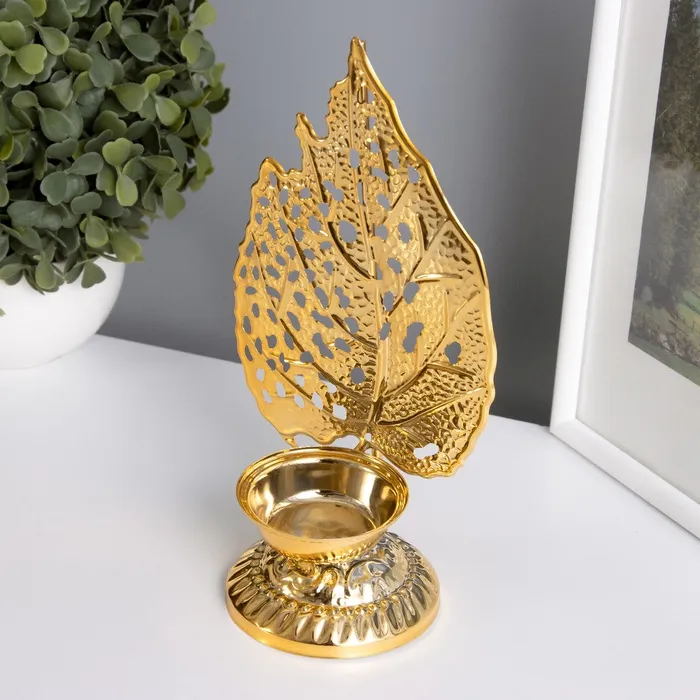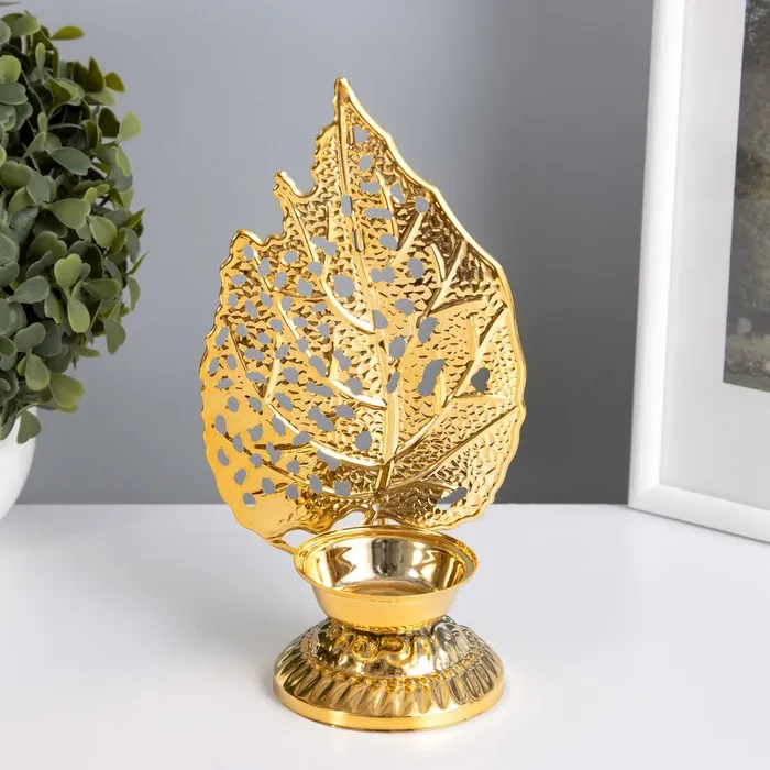Металлический подсвечник на 1 свечу «Скелетированный лист», золото, d=4.7 см, 7.5×10.5×20.5 см — Характеристики