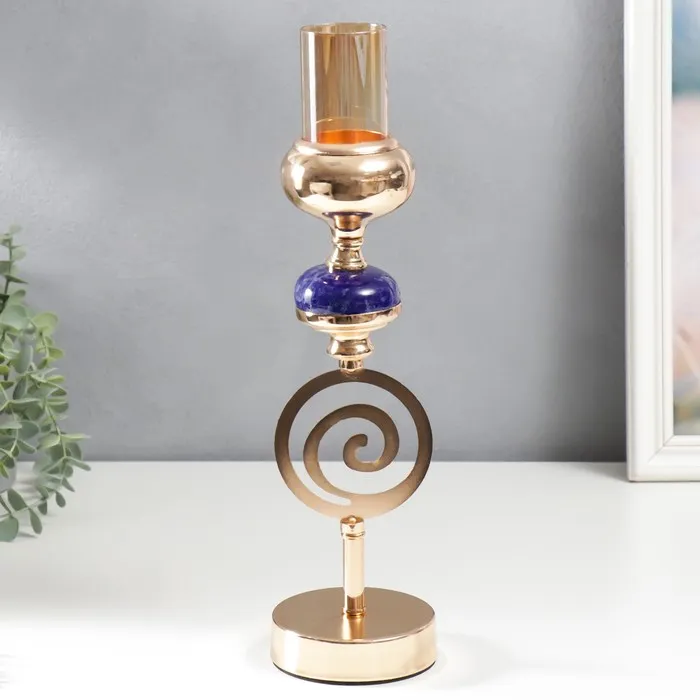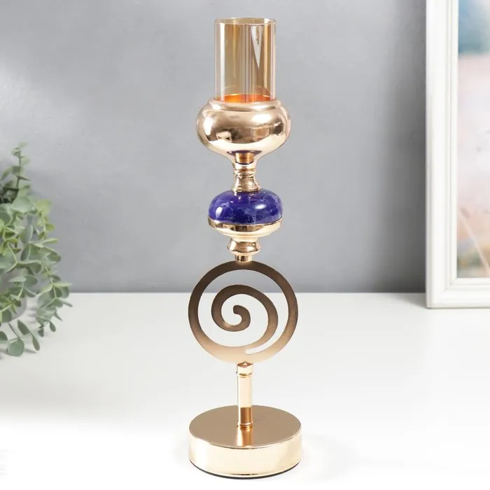 Металлический подсвечник на 1 свечу «Спираль. Синий мраморный элемент», золото, 38×10×10 см — Характеристики