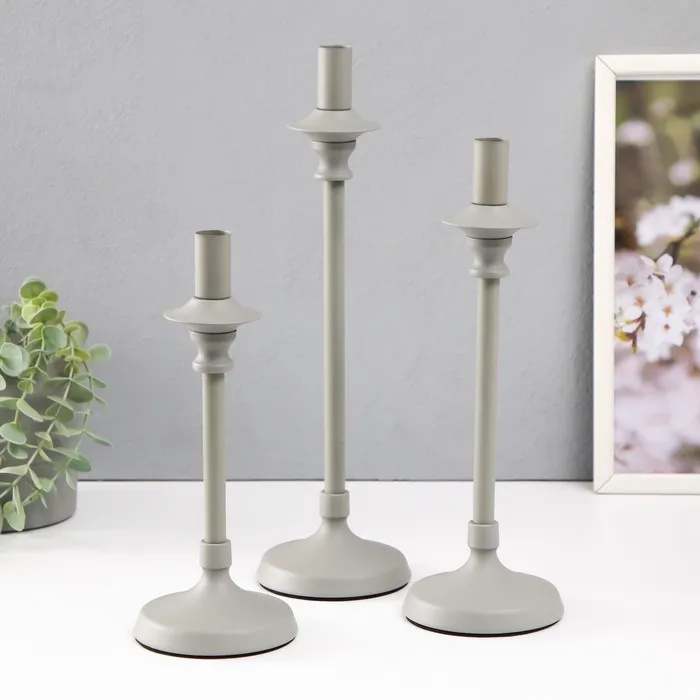 Металлический подсвечник на 1 свечу «Стиан», набор 3 шт., d=2 см, 10.5×10.5×35 30 25 см — Характеристики