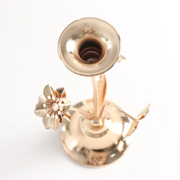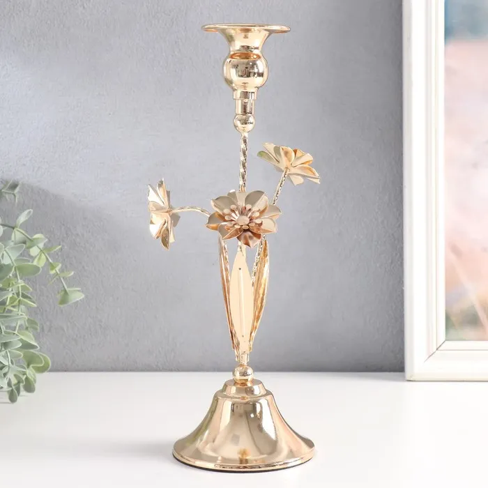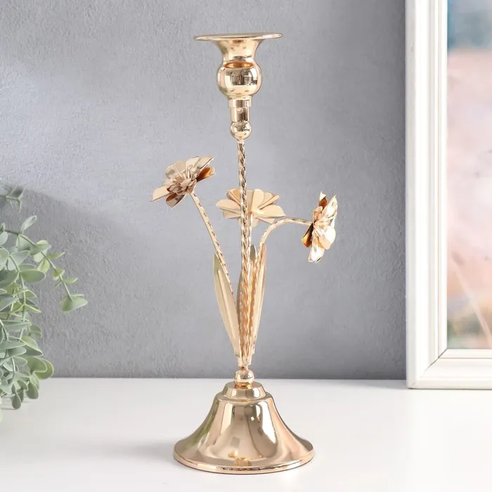 Металлический подсвечник на 1 свечу «Три цветка», d=2.5 см, золото, 10×10×28 см — Характеристики