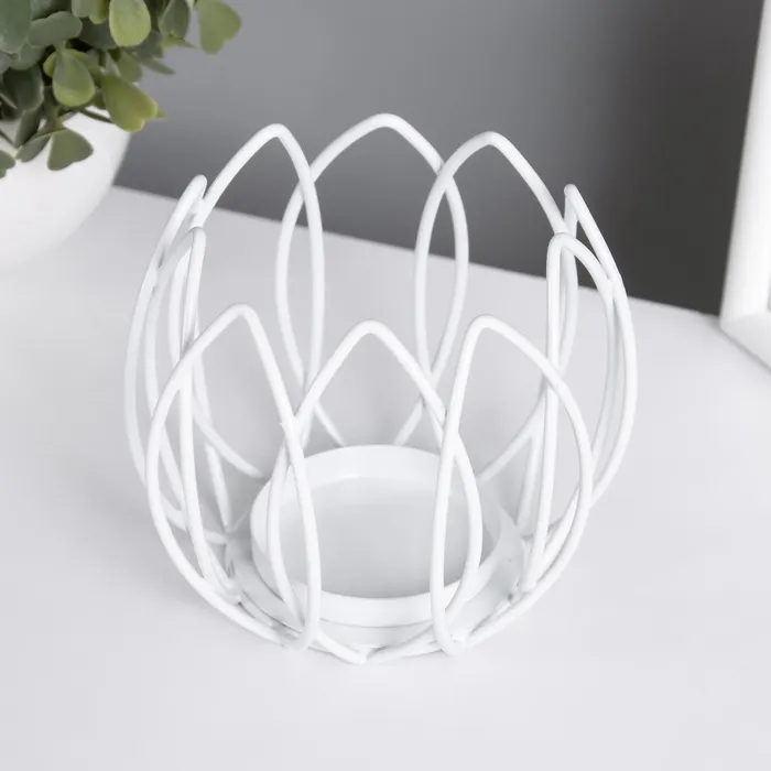 Металлический подсвечник на 1 свечу «Цветок Магнолии», белый, d=5 см, 10.5×10.5×9 см — Характеристики