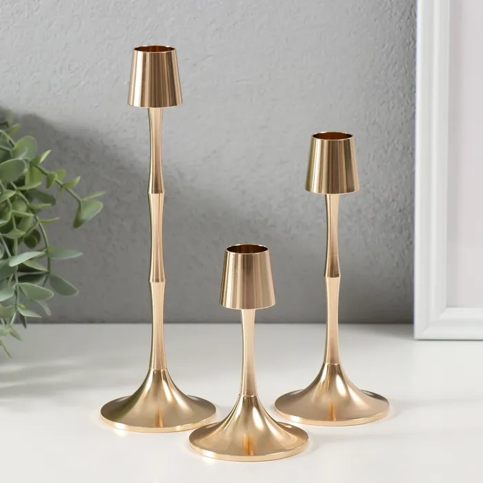Металлический подсвечник на 1 свечу «Утончённый зауженный», d=2 см, набор 3 шт., h=21.5 см, 16 см, 11 см — Характеристики