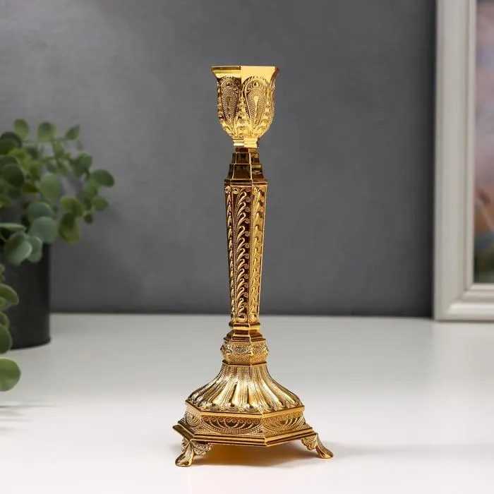 Металлический подсвечник на 1 свечу «Узорный», золото, 19.8×8×8 см — Характеристики