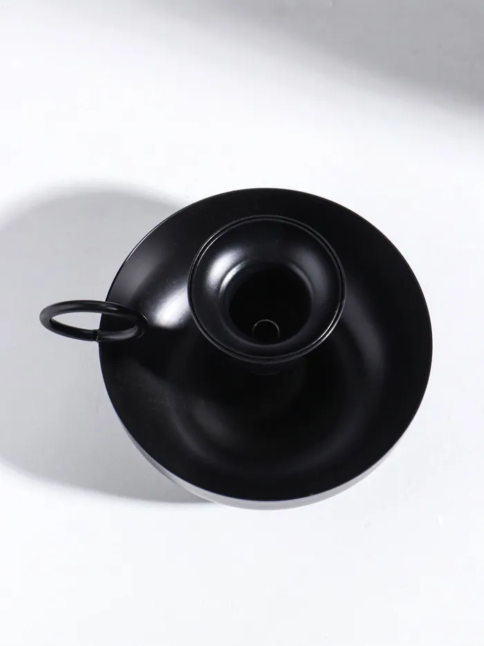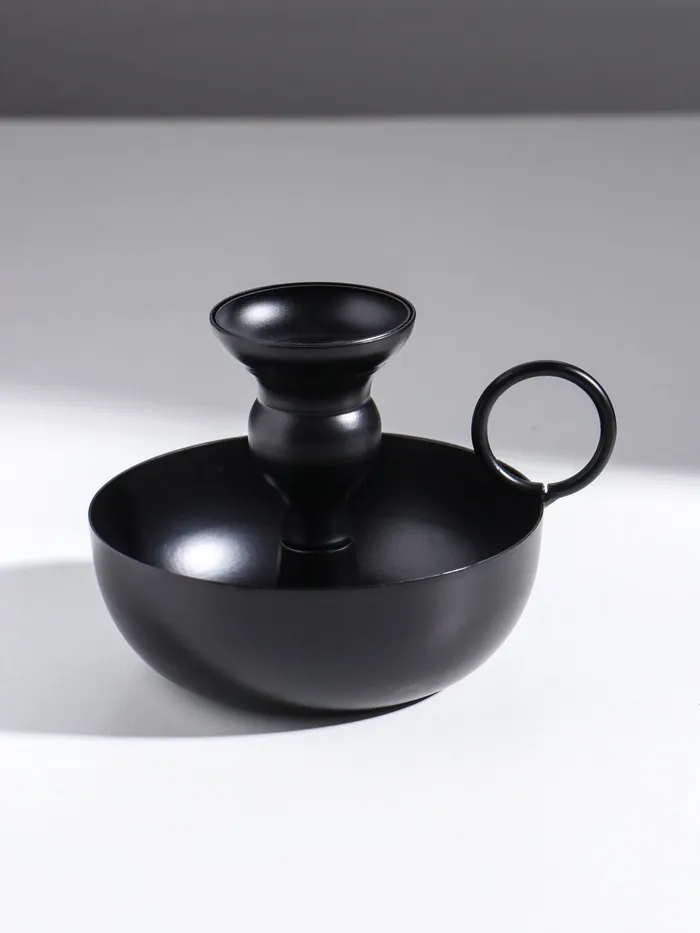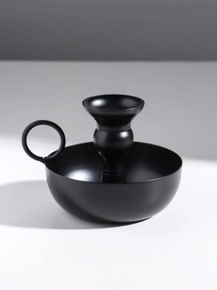 Металлический подсвечник на 1 свечу «Виток с чашей», с ручкой, d=2.6 см, чёрный, 10×10×8.5 см