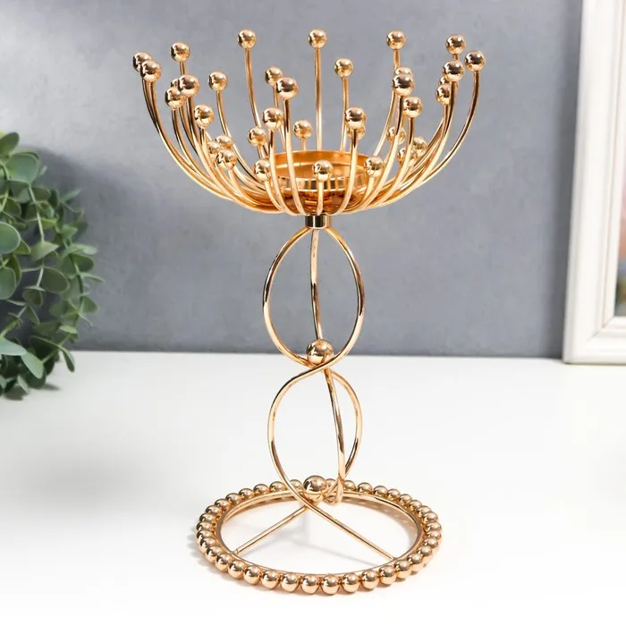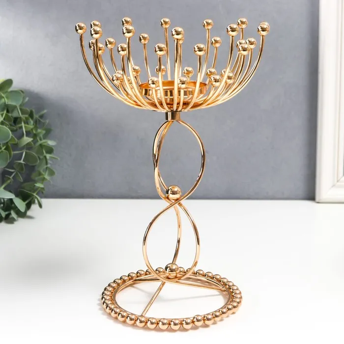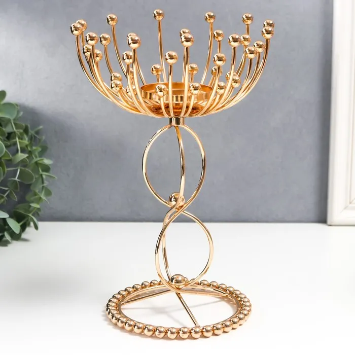 Металлический подсвечник на 1 свечу «Временная петля с шариками», золото, 27×17×17 см — Характеристики