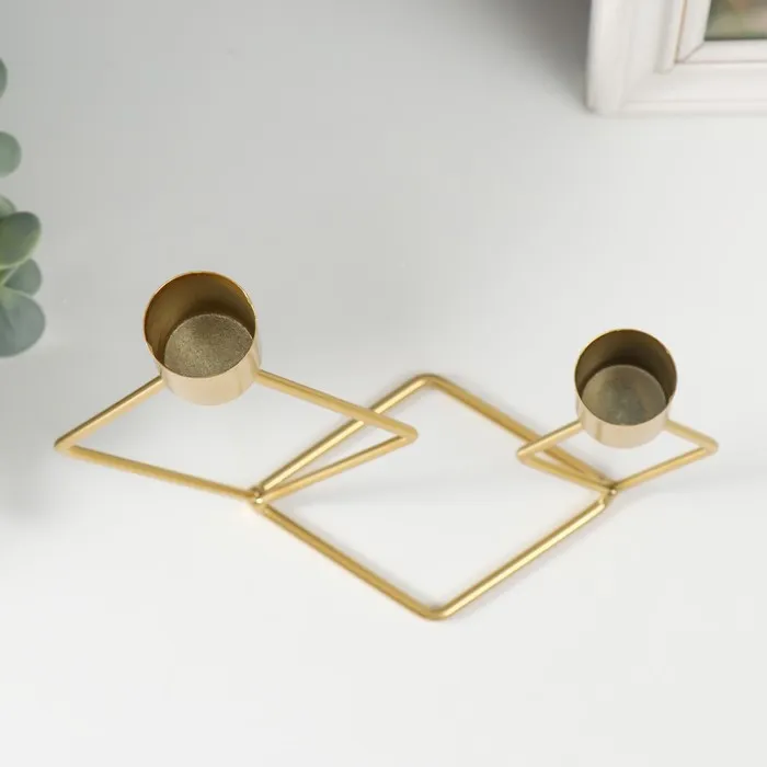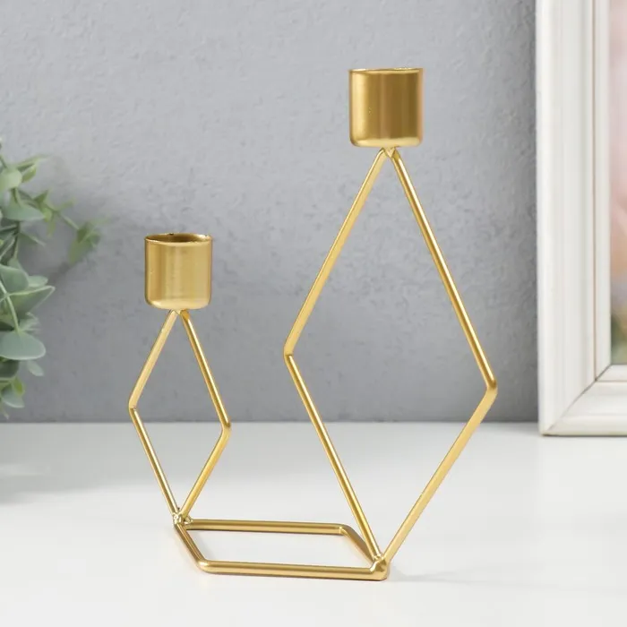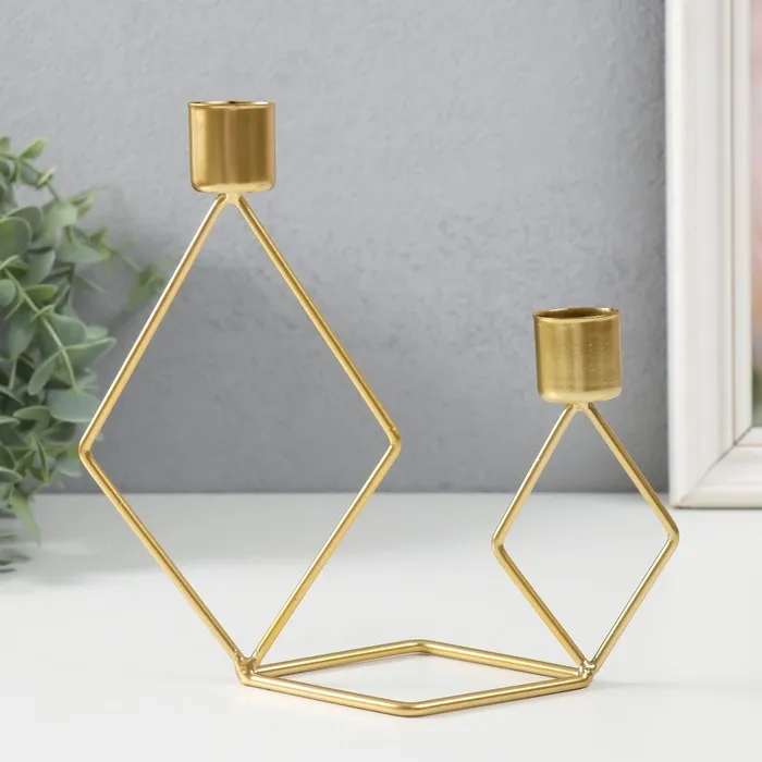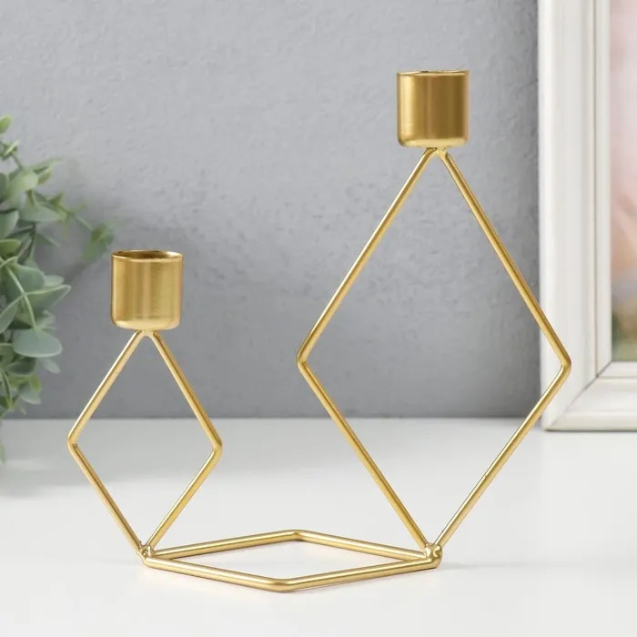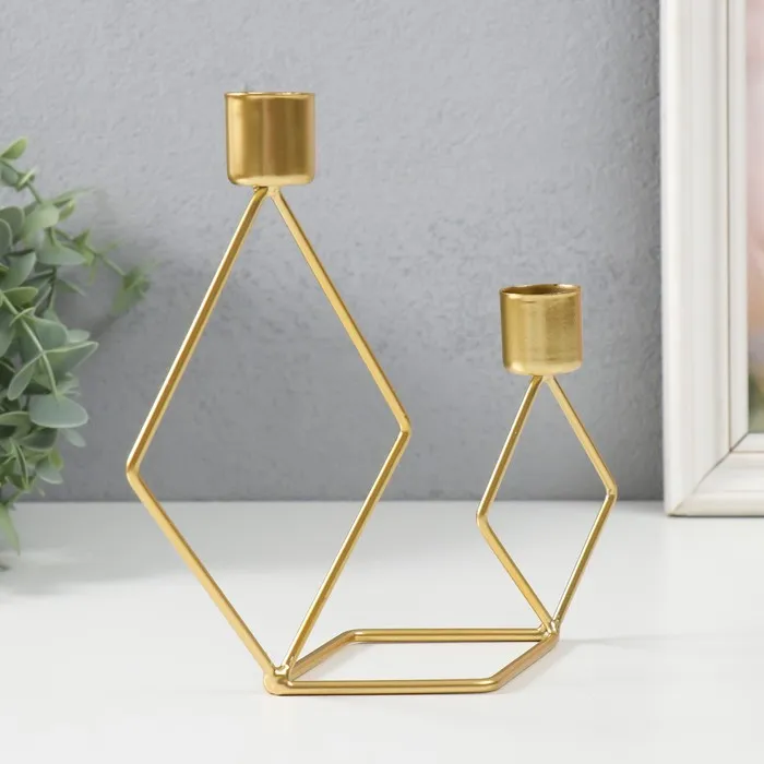 Металлический подсвечник на 2 свечи «Геометрия. Ромбы», золото, d=2.3 см, 7.8×18×19 см — Характеристики