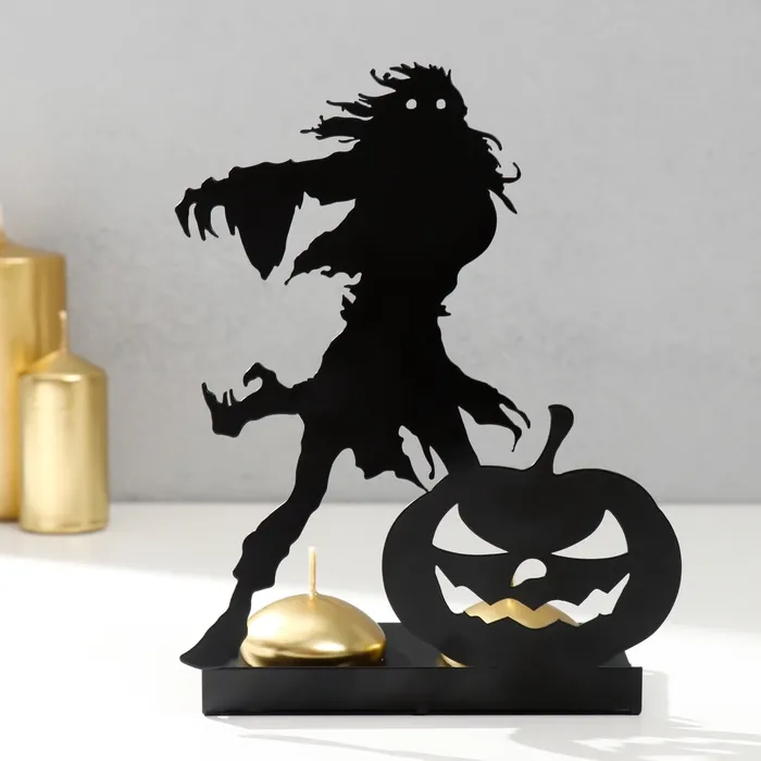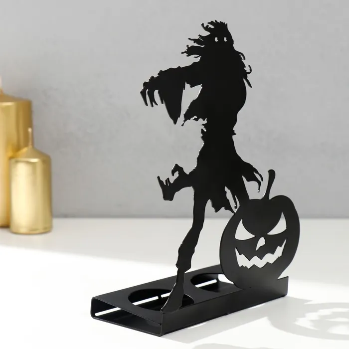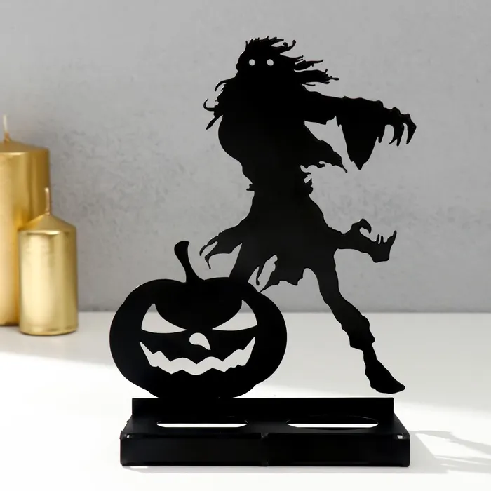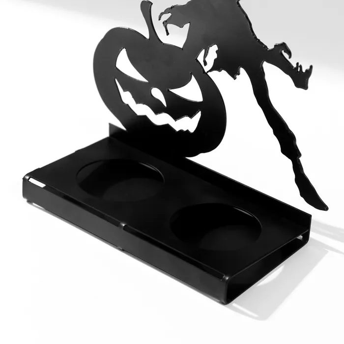 Металлический подсвечник на 2 свечи «Хэллоуин. Монстр с тыквой», чёрный, 18×13.5×6 см — Характеристики