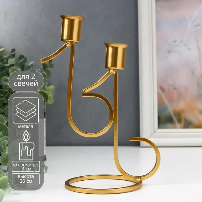 Металлический подсвечник на 2 свечи «Ноты», золото, 20×9×12.5 см — Характеристики