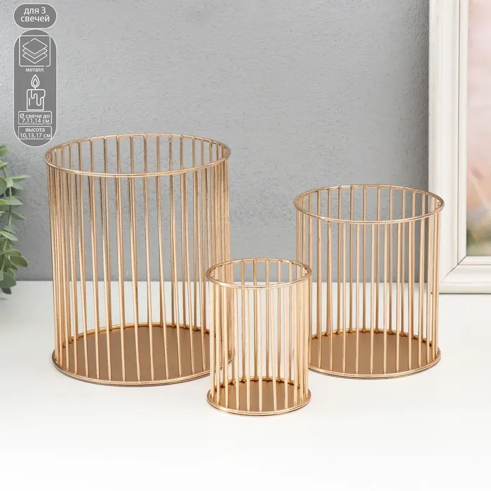 Металлический подсвечник на 1 свечу «Нимбус», набор 3 шт., золото, 8×10 см, 12×13 см, 15×17 см