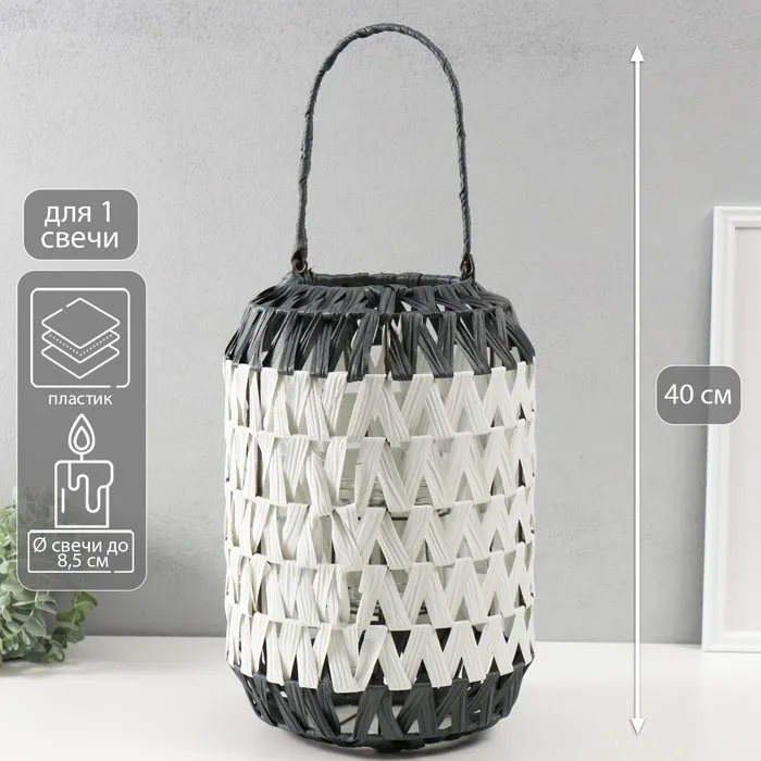 Подсвечник-фонарь на 1 свечу «Зигзаг», пластик, чёрно-белый, 14×26×40 см