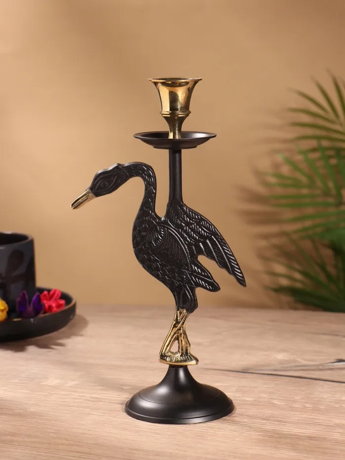 Подсвечник на 1 свечу «Дикая природа», латунь, чёрный с золотом, 12×7.5×23.5 см