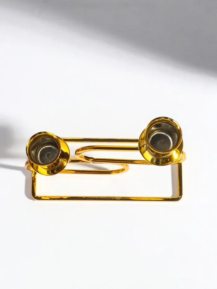 Металлический подсвечник на 2 свечи «Овалы», d=2.3 см, золото, 6×15×11 см
