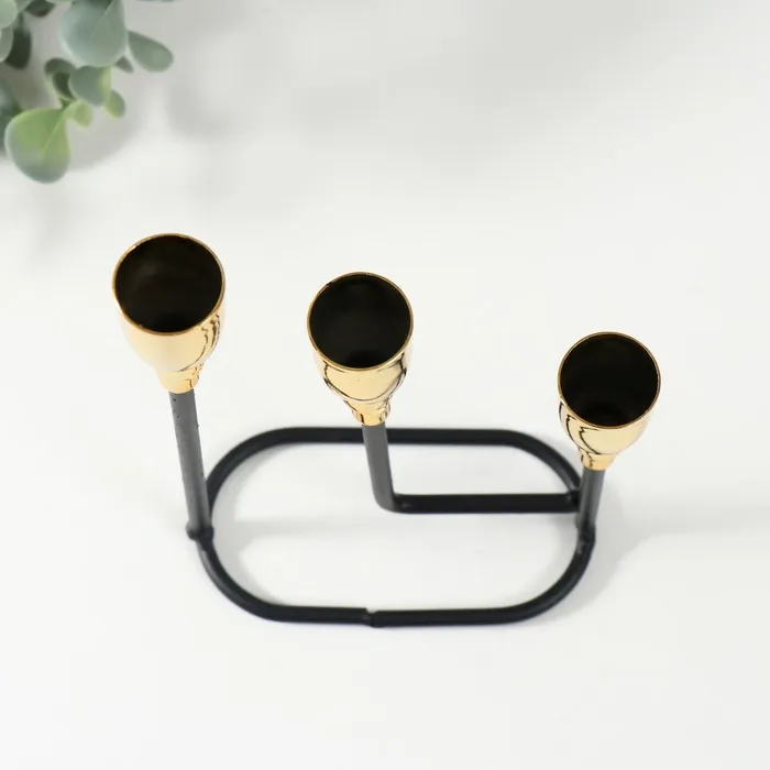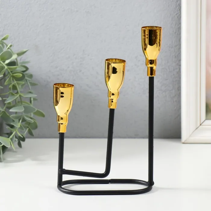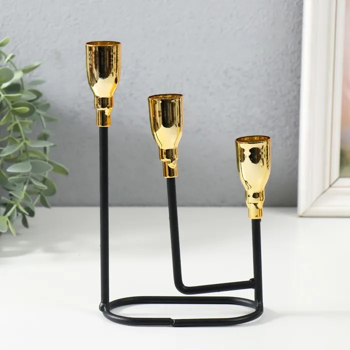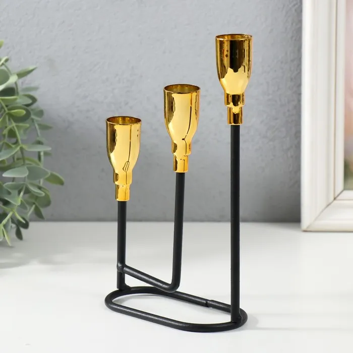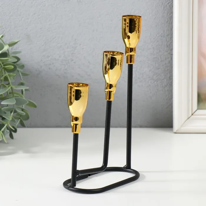 Металлический подсвечник на 3 свечи «Афина», чёрный с золотом, 13×5.8×22.2 см — Характеристики
