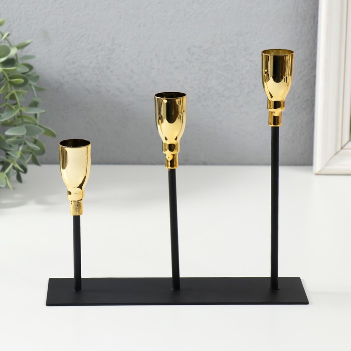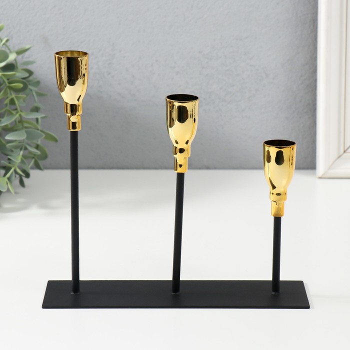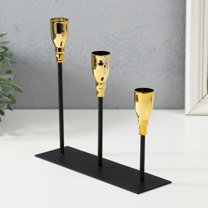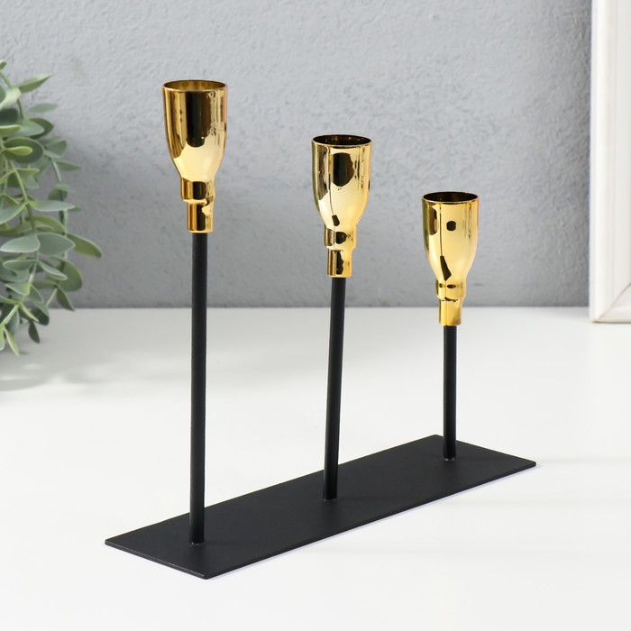Металлический подсвечник на 3 свечи «Ахиллес», чёрный с золотом, 20×6×18 см