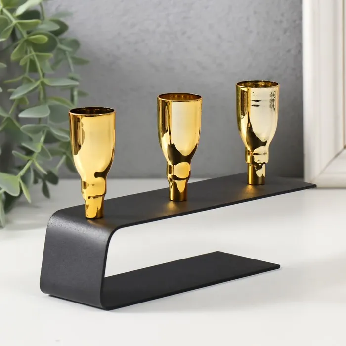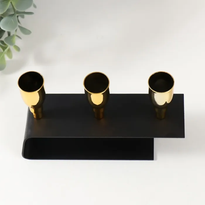 Металлический подсвечник на 3 свечи «Деко», чёрный с золотом, 15.2×4.7×11 см — Характеристики