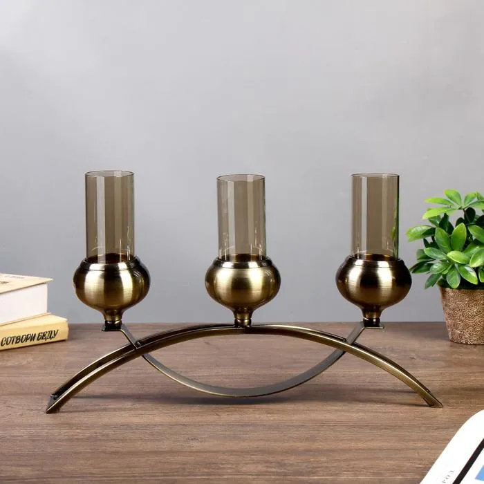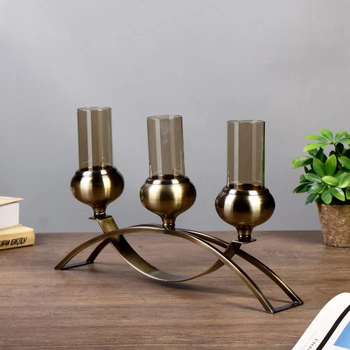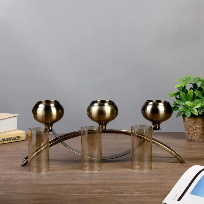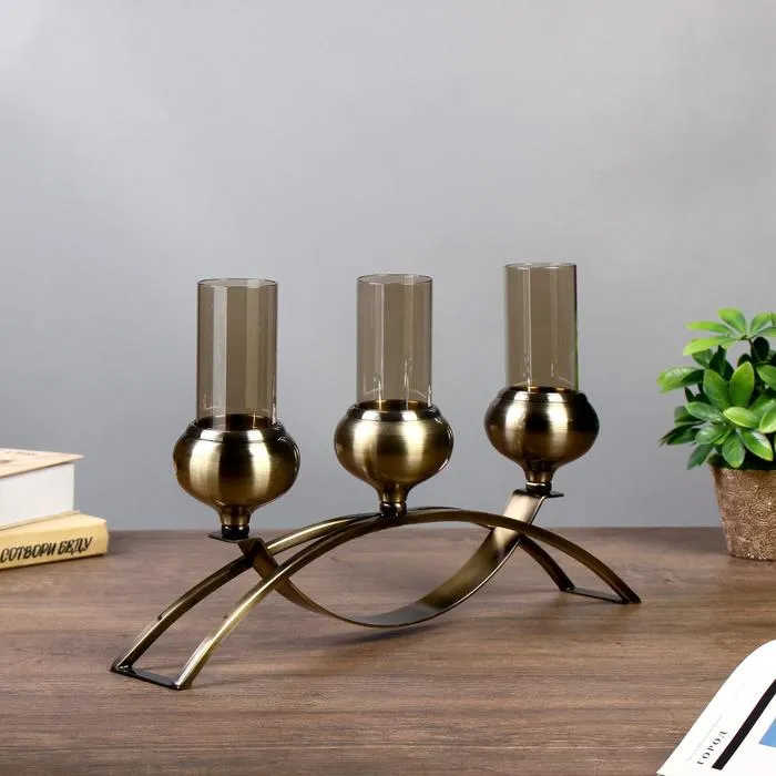 Металлический подсвечник на 3 свечи «Элегантность», под латунь 15×42.5×8 см — Характеристики