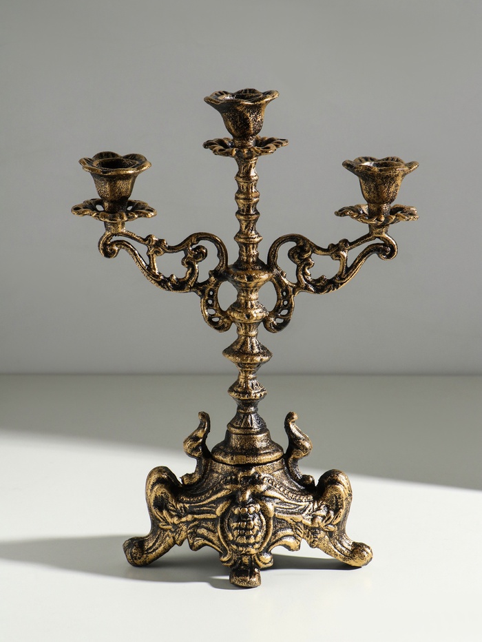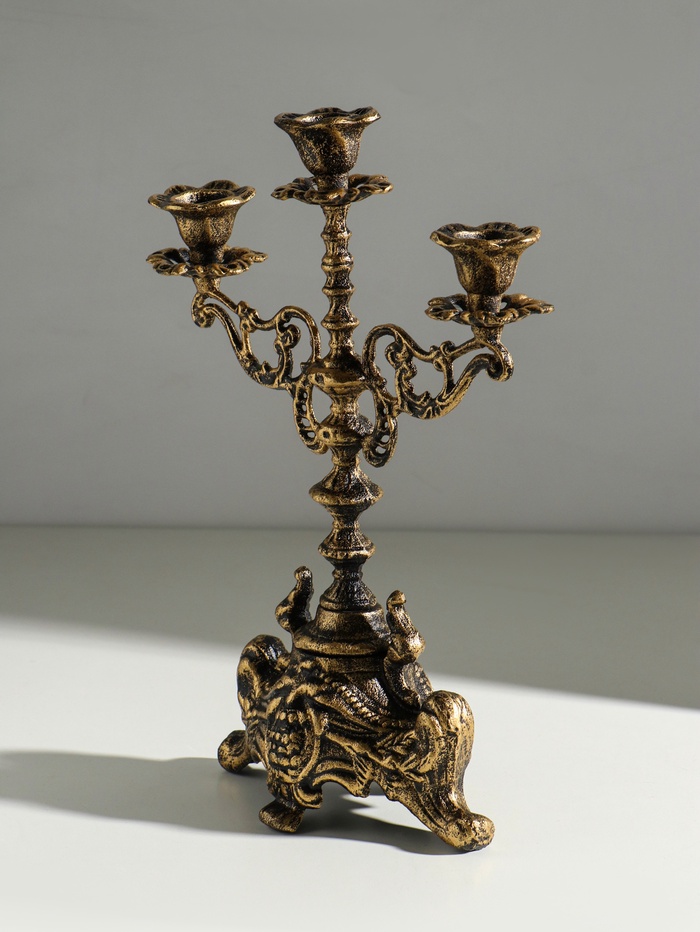 Металлический подсвечник на 3 свечи «Канделябр. Феодал», чугун, под бронзу 32×22×17 см — Характеристики