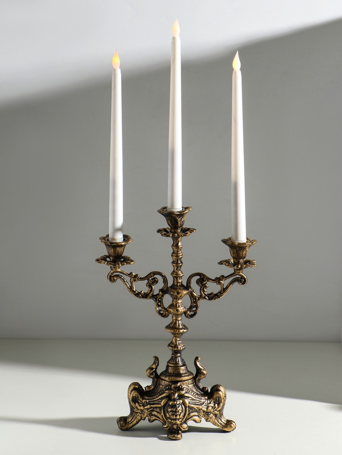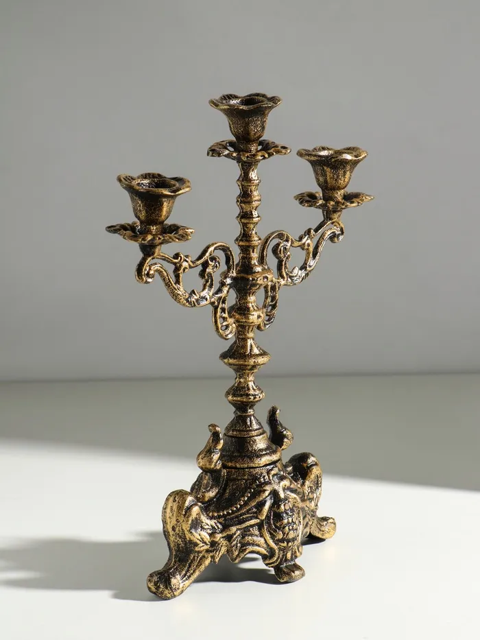 Металлический подсвечник на 3 свечи «Канделябр. Феодал», чугун, под бронзу 32×22×17 см — Характеристики