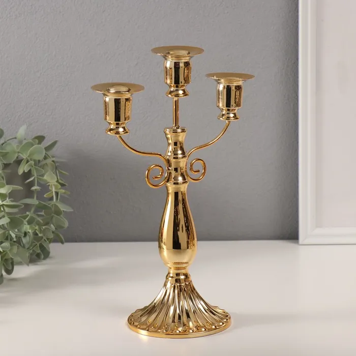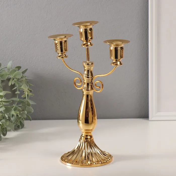 Металлический подсвечник на 3 свечи «Канделябр. Классика с завитками», d=2 см, 10×18.5×27.2 см — Характеристики
