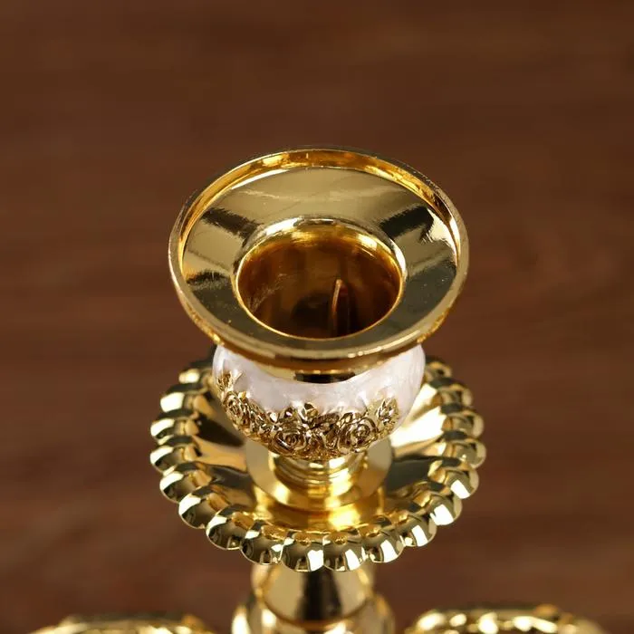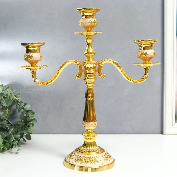 Металлический подсвечник на 3 свечи «Канделябр. Розарий», золото, белая эмаль, 36.5×31.5×12 см
