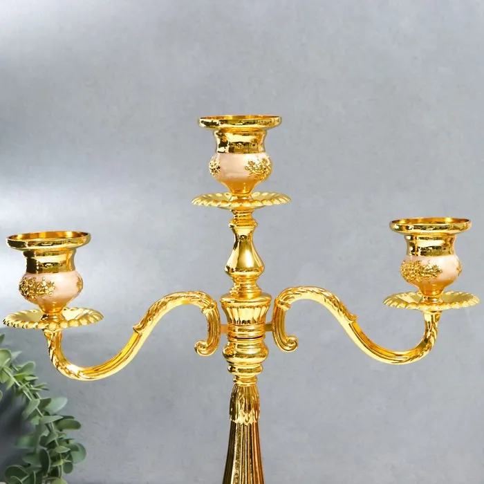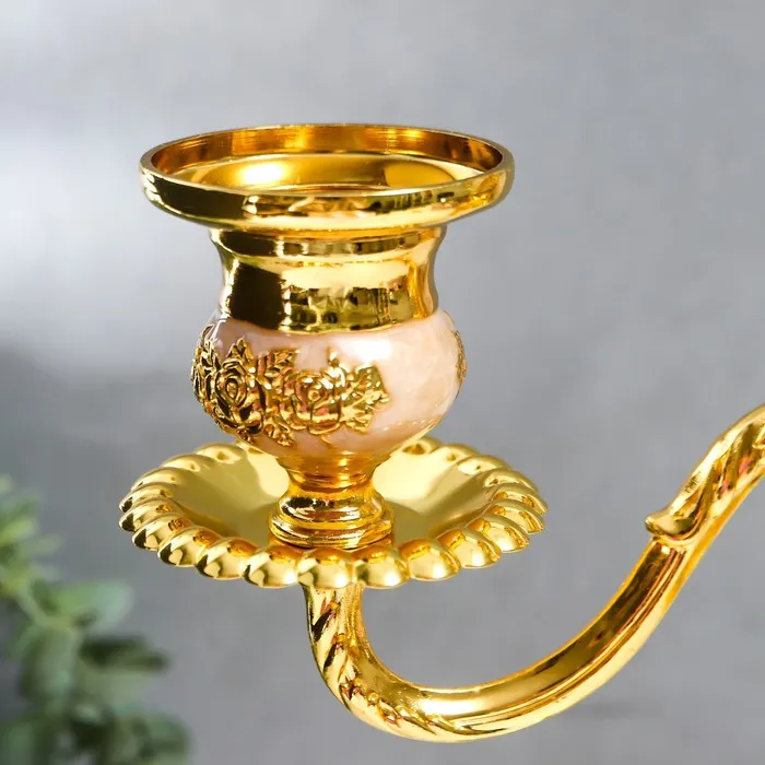 Металлический подсвечник на 3 свечи «Канделябр. Розарий», золото, белая эмаль, 36.5×31.5×12 см — Характеристики