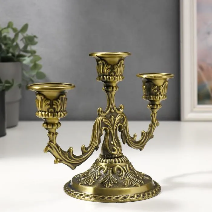 Металлический подсвечник на 3 свечи «Канделябр. Узоры природы», под латунь, 20×14×10 см — Характеристики