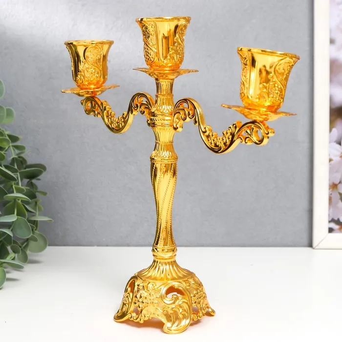 Металлический подсвечник на 3 свечи «Канделябр. Виноградная лоза», золото, 22×7.5×25 см — Характеристики