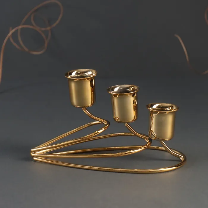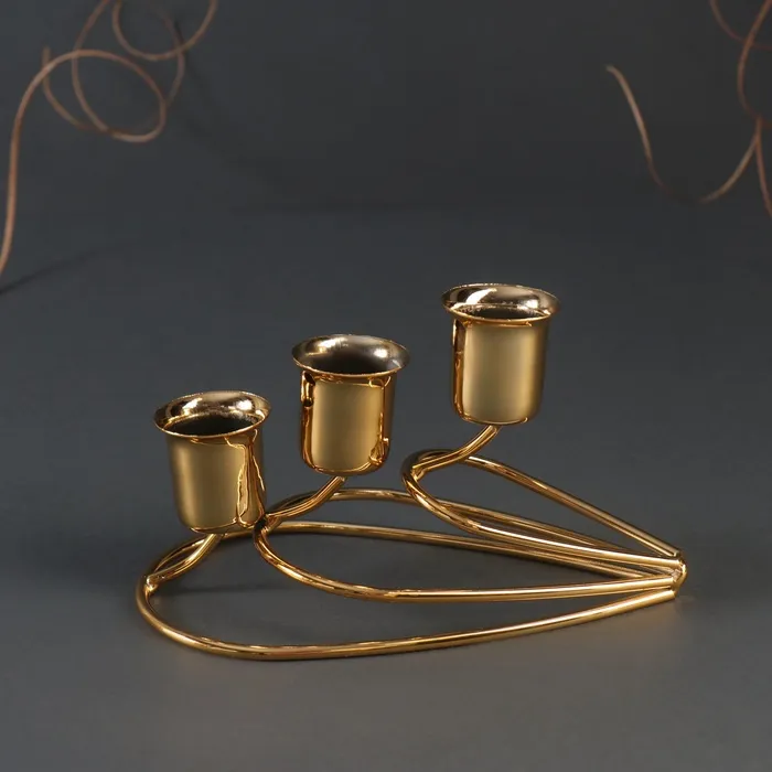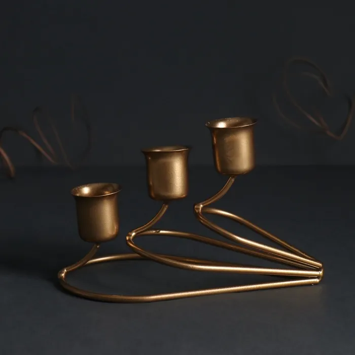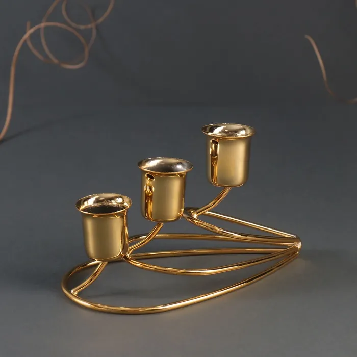Металлический подсвечник на 3 свечи «Капли», золото, 14×8×8 см — Характеристики