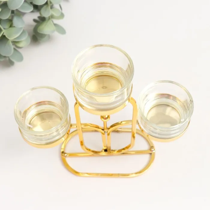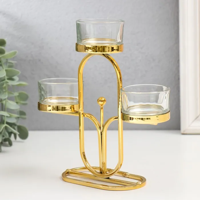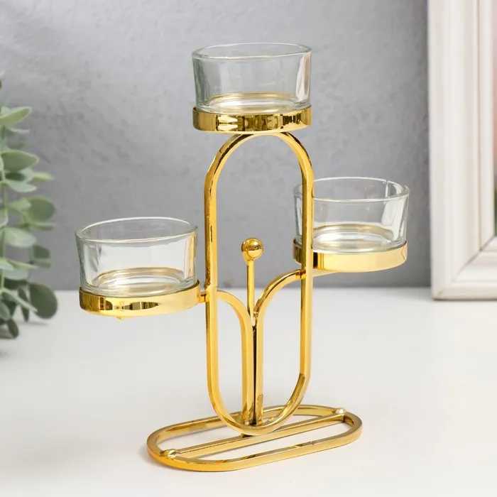 Металлический подсвечник на 3 свечи «Овал», d=4.5 см, золото, 6×15×17 см — Характеристики
