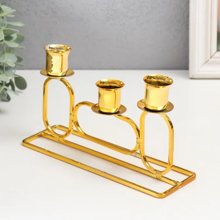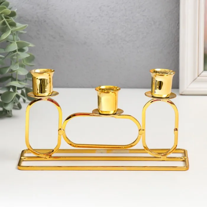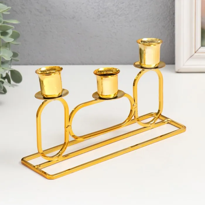 Металлический подсвечник на 3 свечи «Овалы», d=2.3 см, золото, 5.8×20×11.5 см — Характеристики