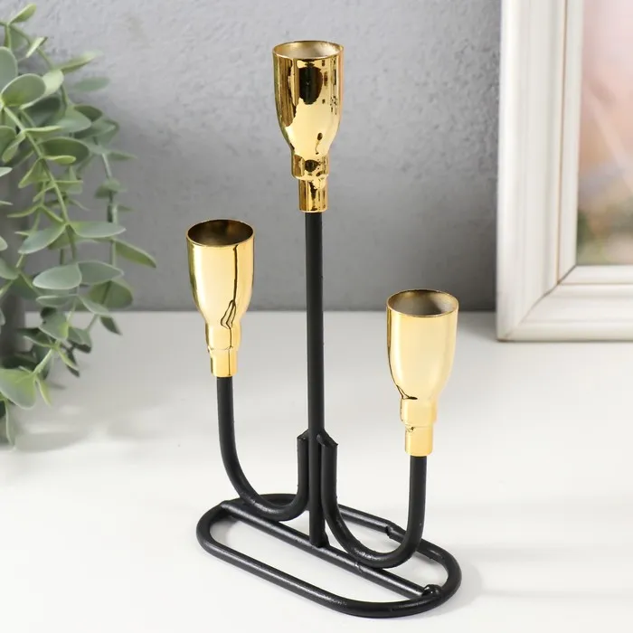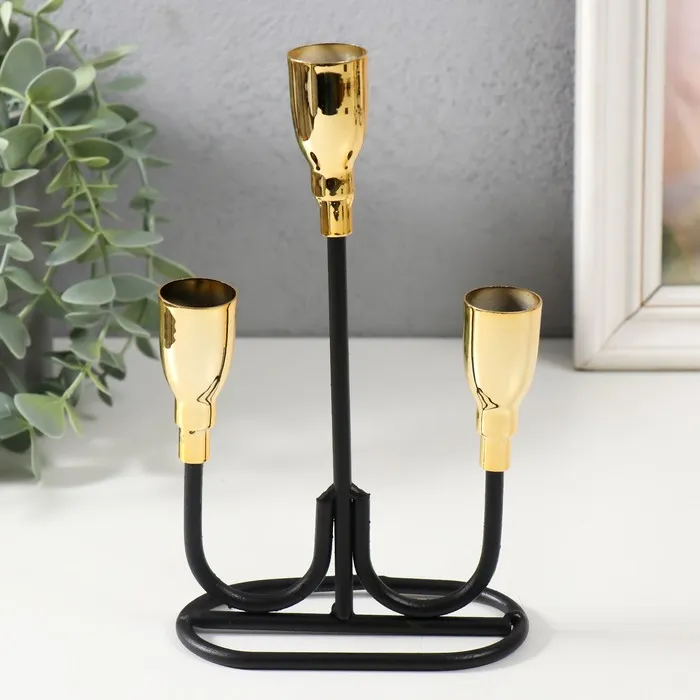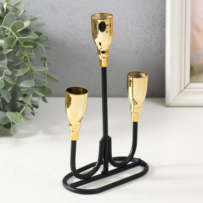 Металлический подсвечник на 3 свечи «Пелей», чёрный с золотом, 16.5×5.8×22.8 см — Характеристики