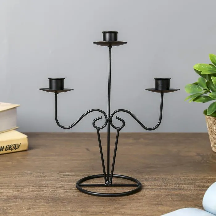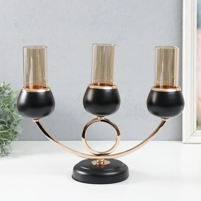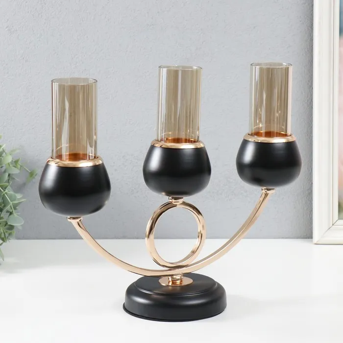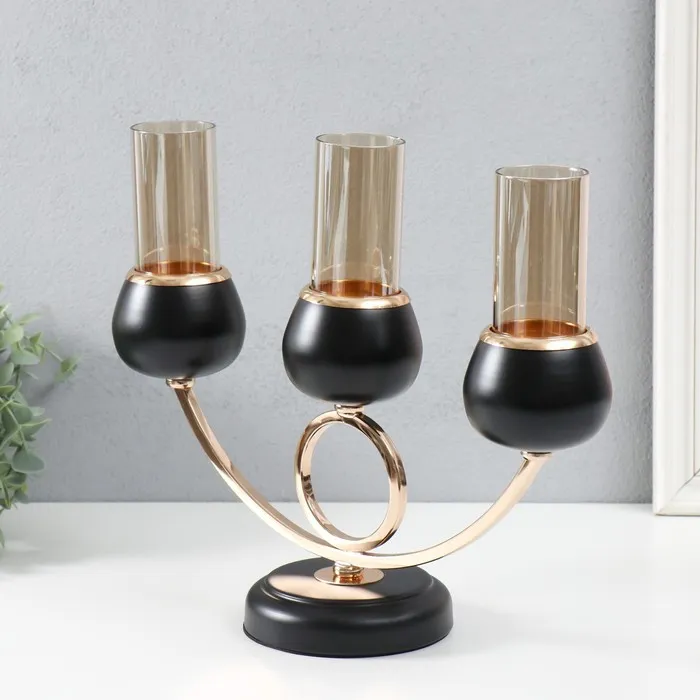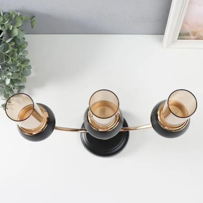 Металлический подсвечник на 3 свечи «Тёмный рыцарь», чёрный матовый с золотом, 36×24×12 см — Характеристики