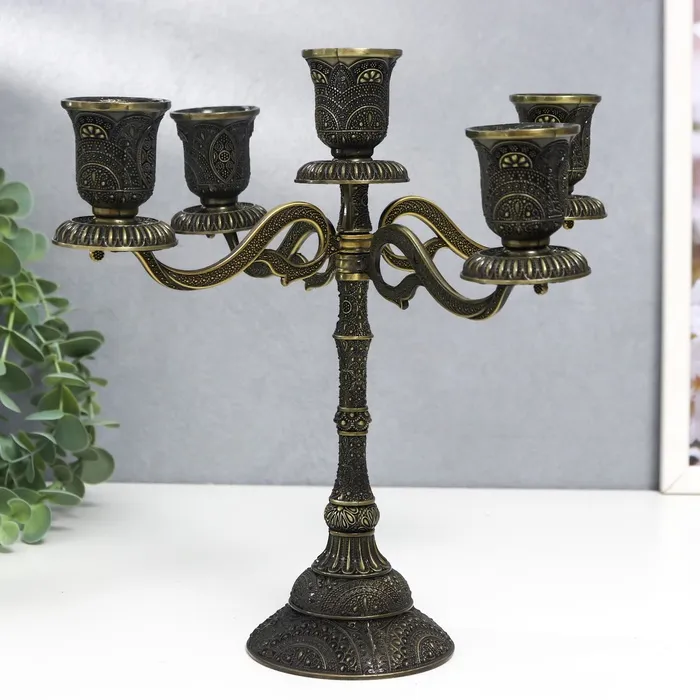 Металлический подсвечник на 5 свечей «Канделябр. Раджа», бронза, 22.5×23×23 см — Характеристики