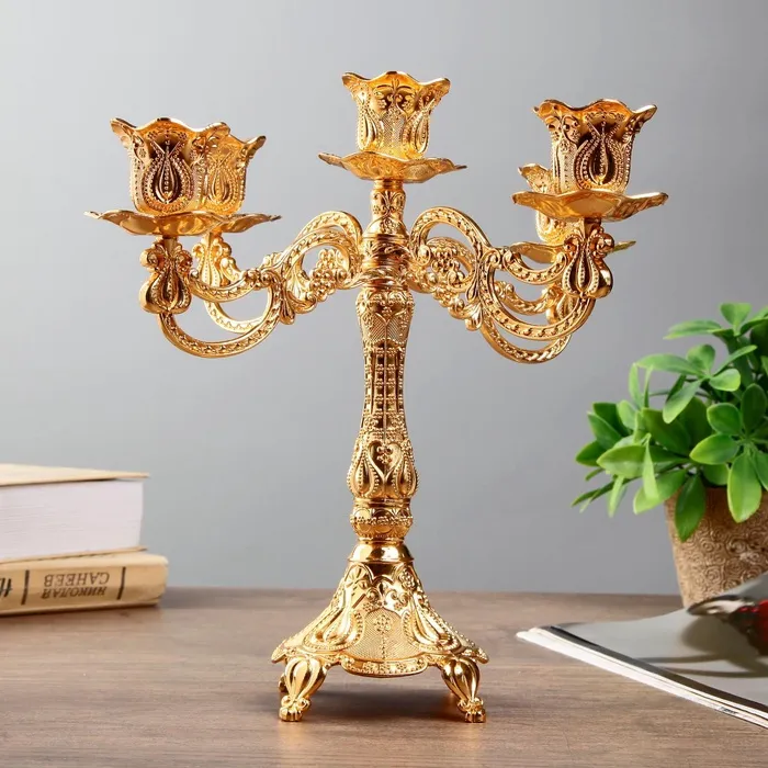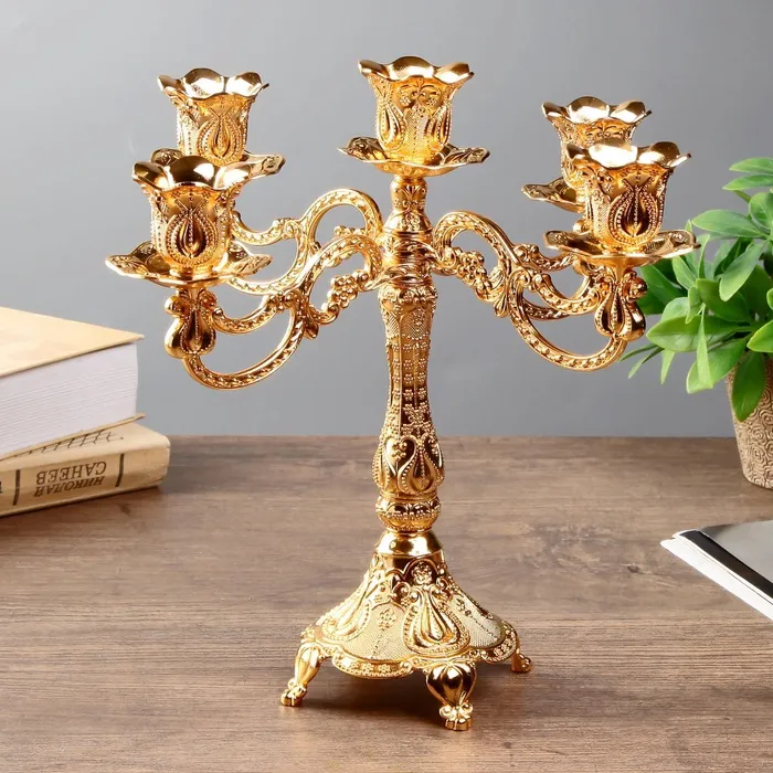Металлический подсвечник на 5 свечей «Канделябр. Узорный», золото, 28×26×26 см — Характеристики