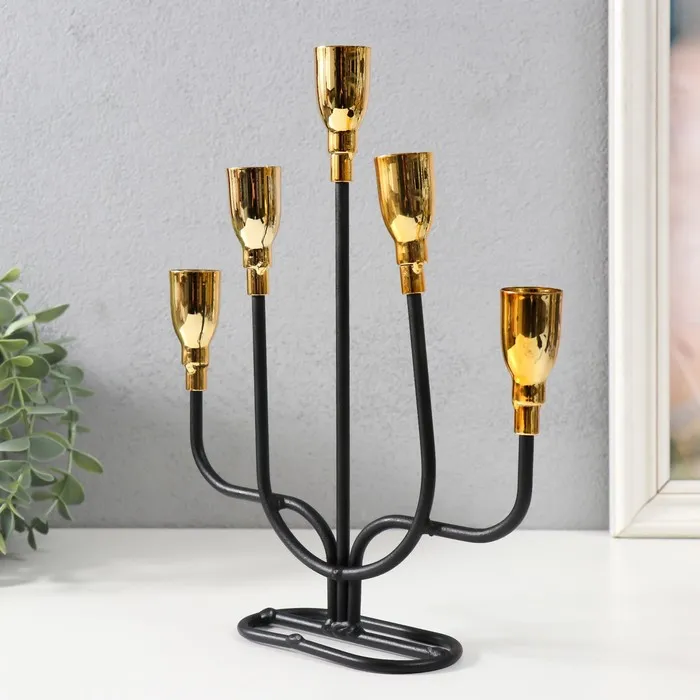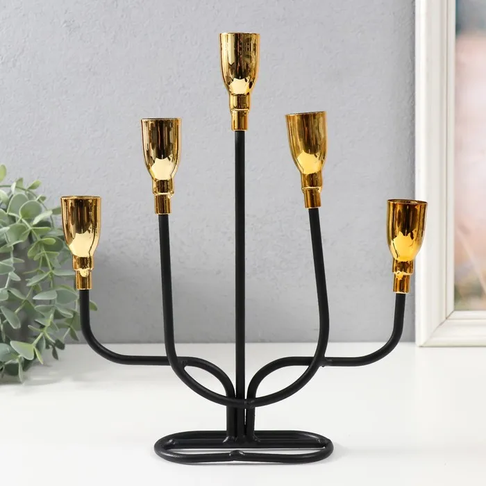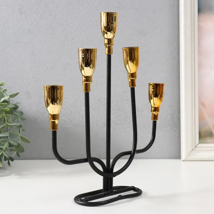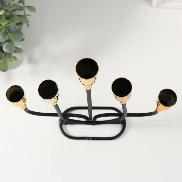 Металлический подсвечник на 5 свечей «Нептун», чёрный с золотом, 20.6×5.7×25.8 см — Характеристики