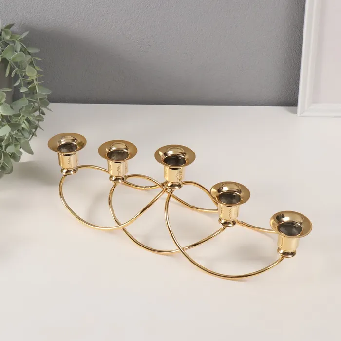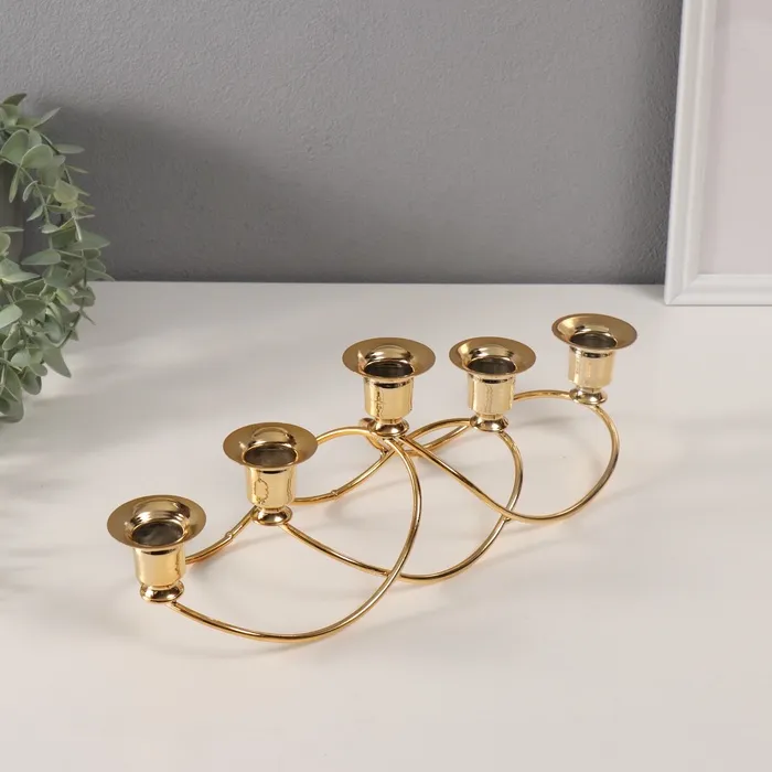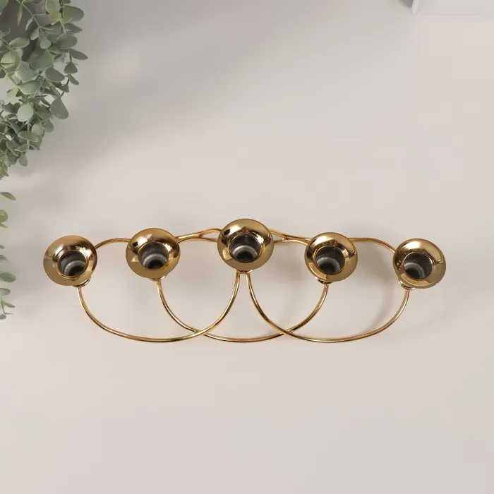 Металлический подсвечник на 5 свечей «Волны», золото, d=2 см, 10.5×37×11 см — Характеристики