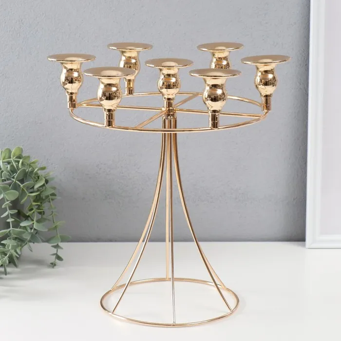 Металлический подсвечник на 7 свечей «Канделябр Конкордия», d=2 см, золото, 29.5×29.5×32 см — Характеристики