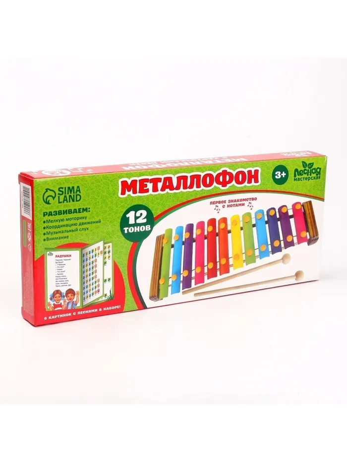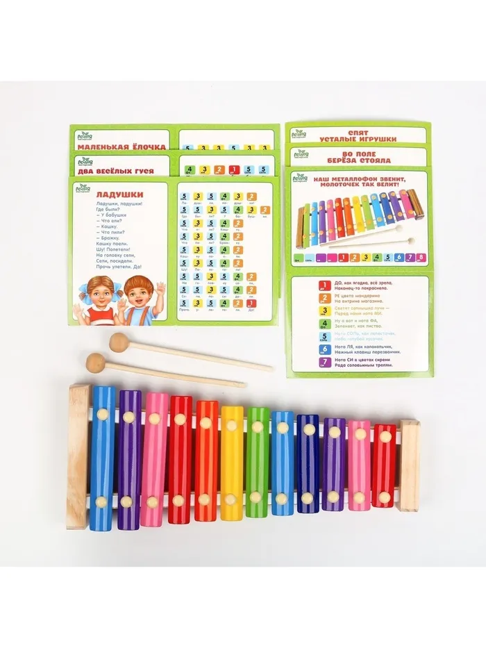 Металлофон, 12 тонов + карточки с песнями — Характеристики