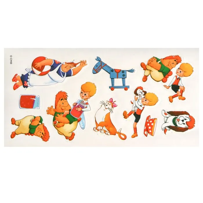 - В набор входят наклейки с персонажами мультфильма «Малыш и Карлсон». Ребёнок может украсит инструмент — так музыкальные занятия станут ещё интереснее.
