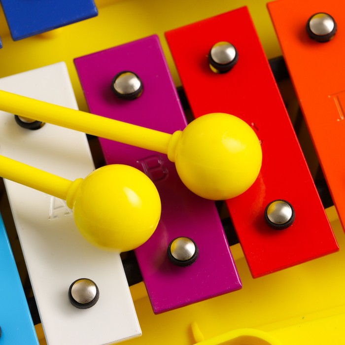 Металлофон музыкальный инструмент Music Life, 25 тонов, футляр, 2 палочки, желтый