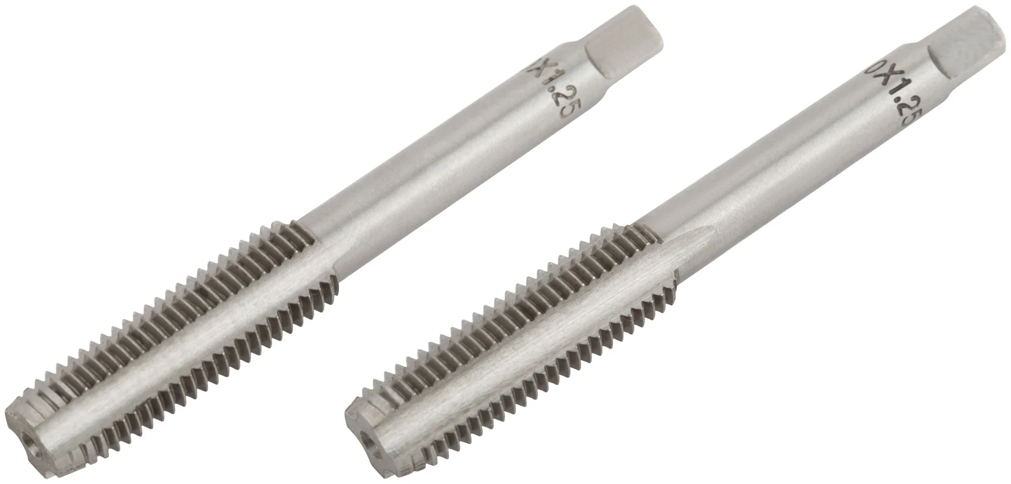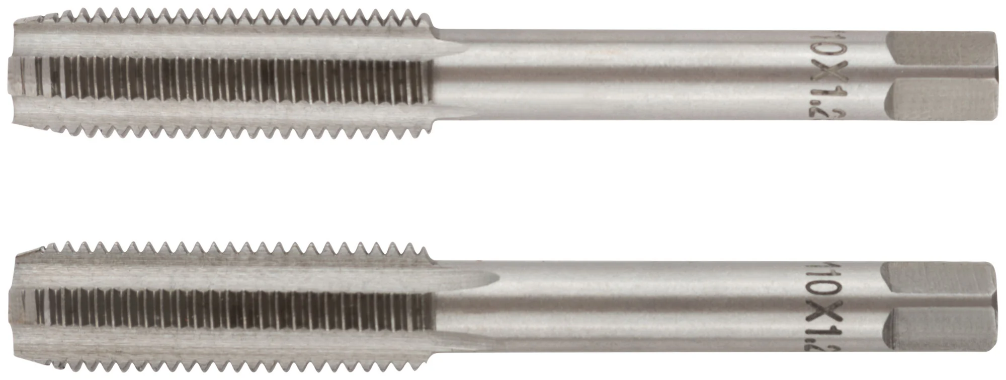 Набор состоит из двух метчиков: грубого и точного, что обеспечивает универсальность применения и возможность выбора подходящего инструмента для конкретной задачи.