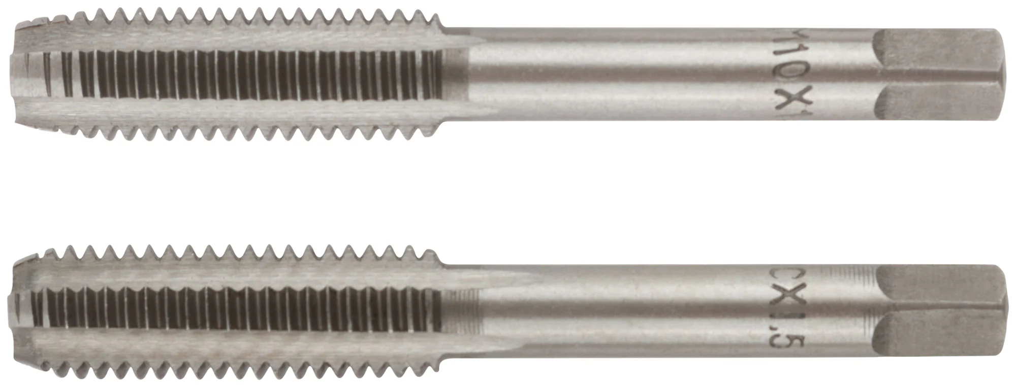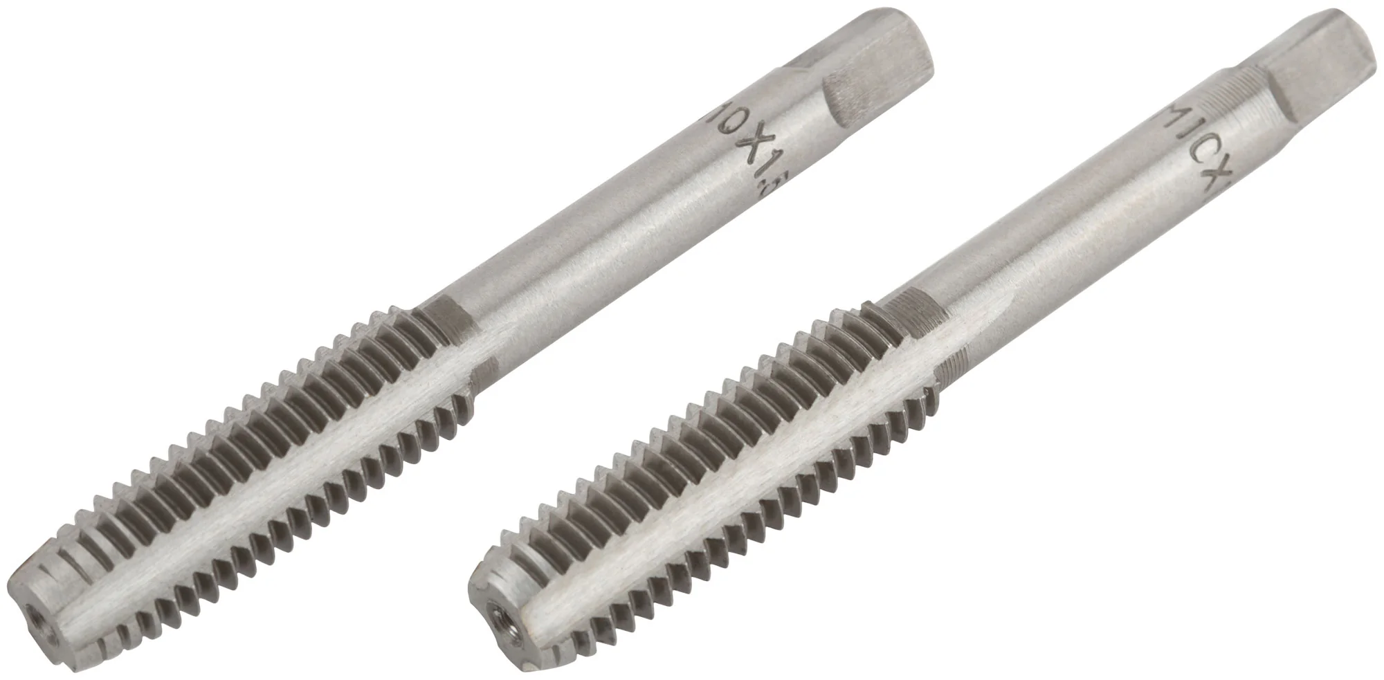 Метчики изготовлены из легированной стали и имеют закалку до HRC 58-60, что обеспечивает прочность и долговечность. Набор включает два метчика — для грубой и точной резьбы, что позволяет работать с разными материалами и задачами.